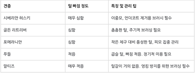 견종에 따라 털 빠짐의 강도와 관리법도 달라지죠.