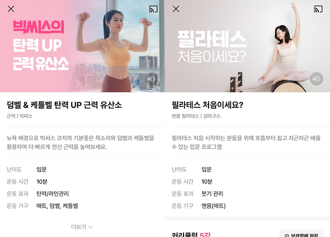 이 외에 동작이 쉬워 초보자들이 선호하는 윤송연 코치의 ‘붓기타파 특공대’, 발레코어 인기에 힘입은 신혜 코치의 ‘누구나 사뿐사뿐 발레 스트레칭’, 거북목이나 허리디스크에 시달리는 이들을 위해 자세교정에 초점을 둔 태희 코치의 ‘바디 리셋 척추 교정 필라테스’도 조회수가 높다.