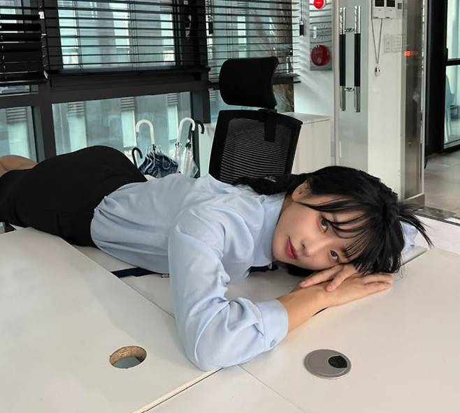 수영복 사진의 열기가 채 식기도 전에, 달수빈은 또 다른 매력으로 팬들 앞에 섰습니다. 이번에는 드라마 촬영 현장으로 보이는 사무실에서 찍은 사진을 공개한 것입니다. “열일 했다”는 글과 함께 올라온 사진 속 그녀는 단정한 오피스룩을 완벽하게 소화하며 지적이고 세련된 분위기를 자아냈습니다.