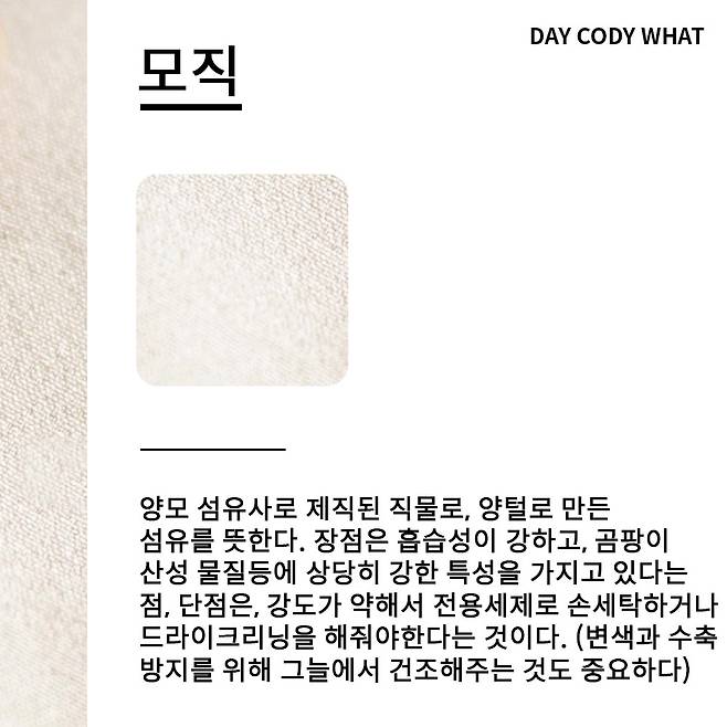 내가 지금 입고 있는 옷이 어떤 원단인지 꼼꼼히 확인하고 알고 입으면, 옷을 어떻게 관리할 수 있는지 디테일한 관리법들을 알 수 있어요😘
