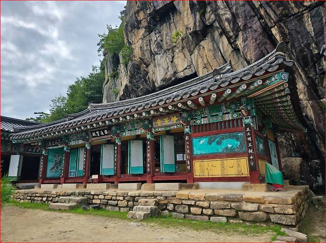여름 햇살이 유독 뜨겁던 어느 날, 숲길을 따라 천천히 오르던 발걸음은 정방사 앞에서 멈췄습니다. 금수산 자락, 해발 1,000m를 넘는 고지대에서 만나는 이 사찰은 단순한 수행처를 넘어 자연이 만들어낸 절경 속 고요한 성소였습니다. 무엇보다 사찰의 법당 지붕을 3분의 1 가량 덮고 있는 거대한 암벽은 첫눈에 강한 인상을 남깁니다. 마치 하늘에서 떨어진 듯한 바위가 법당과 하나 되어 서 있는 모습은 자연의 위엄과 인간의 겸손함을 동시에 느끼게 해 주었죠.