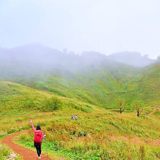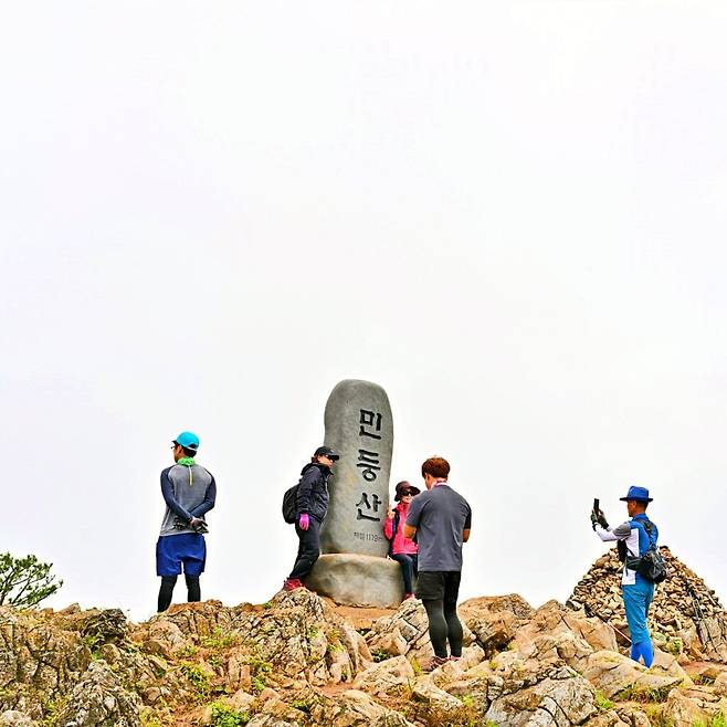 등산 끝에 도달한 산 정상에서는 백록담을 닮은 돌리네의 경관도 감상할 수 있다. 민둥산 방문 인증샷으로 큰 인기를 끌고 있는 포토존이니, 잊지 말고 근사한 사진을 남겨보자.