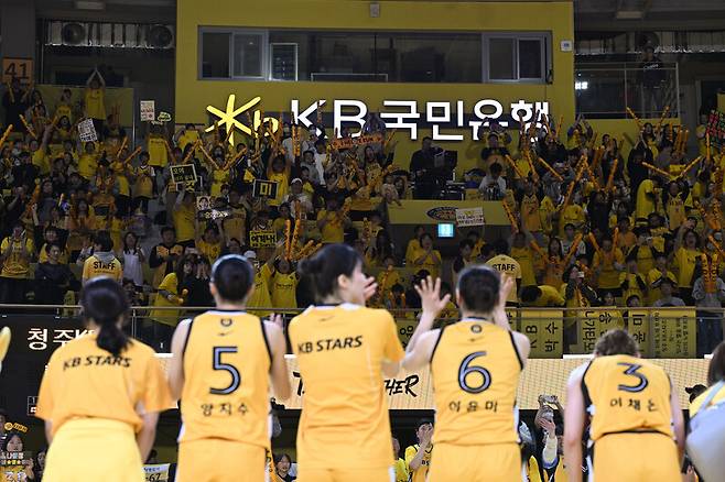 많은 구단이 홈에서 더 강한 모습을 선보인다. 그러나 청주는 더 강했다. 그 이유는 팬들의 열렬한 응원과 지지가 있기 때문. 김완수 KB 감독은 비시즌 인터뷰를 통해 “팬들 덕분에 우리가 지난 시즌 거기까지 갔다. 이번 시즌에도 팬들과 함께 호흡하고 싶다. 우리도 팬들에게 즐거움을 선사하고 싶다. 그러면 팬들은 우리에게 큰 힘을 줄 것을 알고 있다. 우리의 또 다른 식스맨이다”라며 팬들에 대한 애정을 드러냈다.