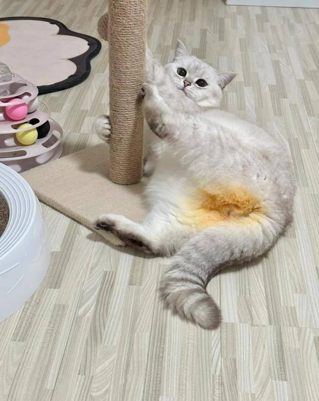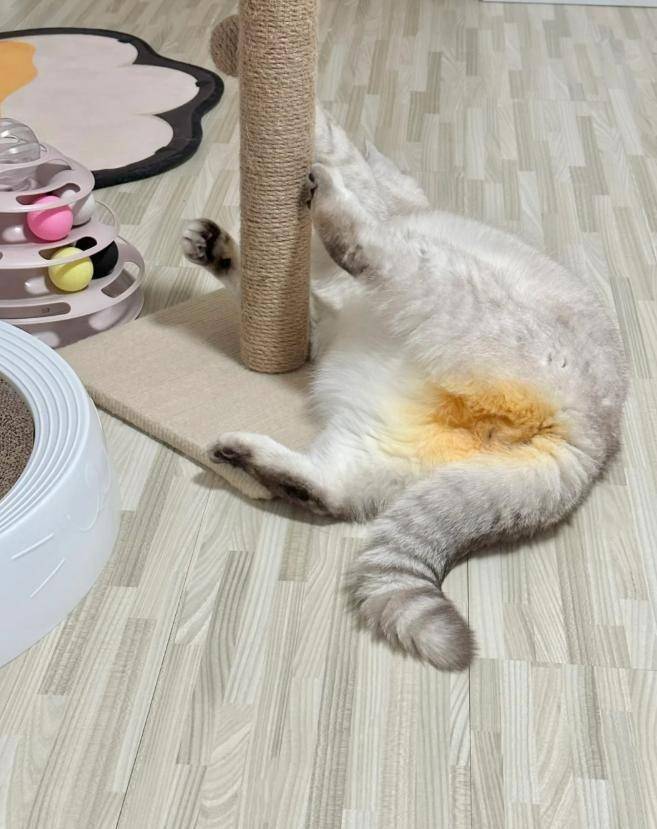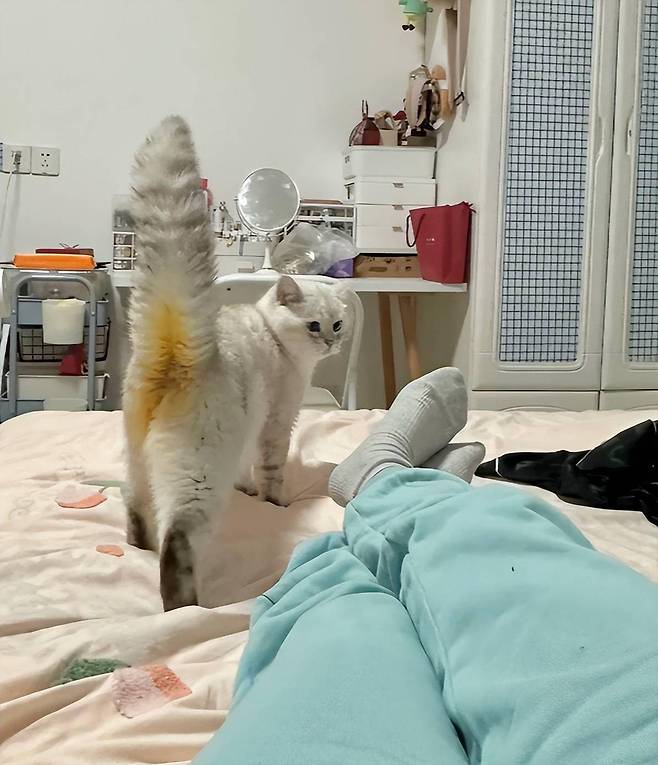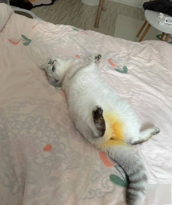 처음에는 네티즌들이 혹시 사진 보정으로 엉덩이 부분을 노랗게 만든 것이 아닐까 의문을 제기했지만, 집사는 즉시 해명에 나섰습니다.