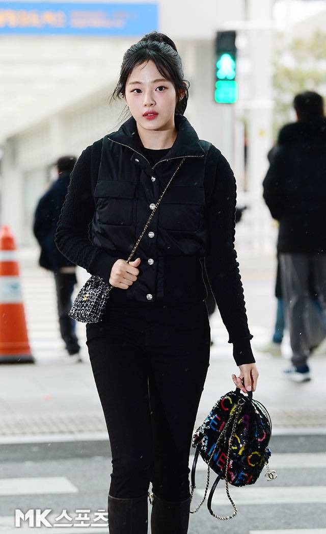 또, 민지는 블랙 스키니 팬츠에 그레이 롱부츠를 착용해 다리가 길어 보이는 효과를 주며 스타일리시한 패션 센스를 뽐냈습니다.