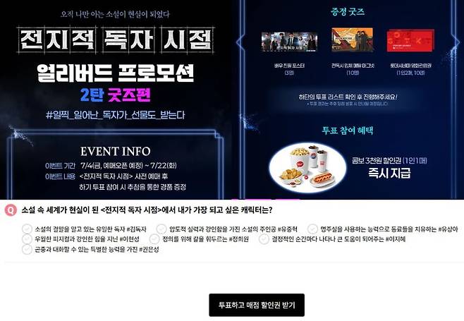- 얼리버드(사전) 예매 후, 투표하면 굿즈 + 콤보 3천원 할인권 증정