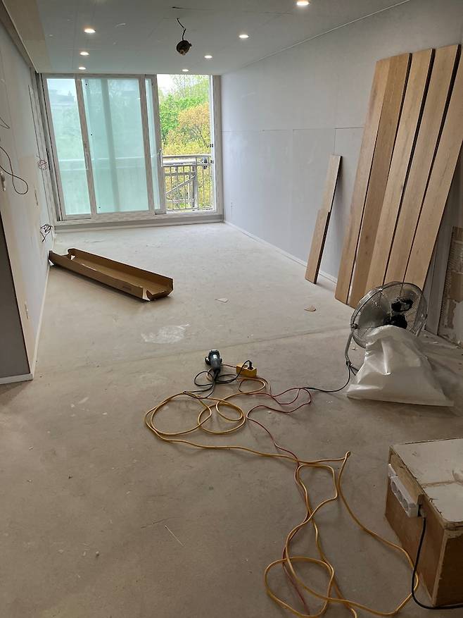 💡 원목 마루를 고려하고 계시다면원목마루 특성상 옹이와 이색이 존재할 수밖에 없는데요, 만약 이 점에 민감하시다면 시공할 때 옹이가 두드러지는 마루를 최대한 가구로 가려지는 구석 쪽으로 몰아달라고 부탁드려보세요. 그리고 원목 마루 틈새에 먼지와 페인트가 끼면 정말 정말 청소하기 어렵기 때문에, 마루 시공 후에 정말 꼼꼼히 보양하시는 것을 추천드립니다.