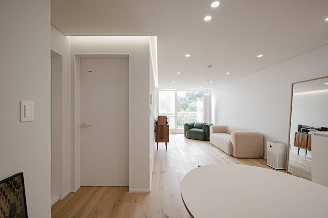 저는 보통 거실에서 책을 읽으며 많은 시간을 보내는데요, 거실이 좁고 안방이 넓은 구조라 어떻게 하면 거실을 최대한 넓게 쓸 수 있을지가 리모델링의 관건이었습니다.