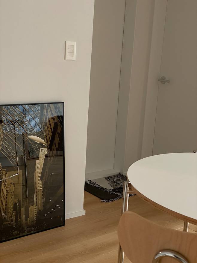 식탁 옆 빈 벽이 허전해서 평소 좋아하던 영화 포스터를 크게 프린트해서 액자에 넣어 세워놨습니다. 생각보다 훨씬 예쁘고 존재감이 강합니다. 아무래도 포스터가 가성비 제일 좋은 인테리어 소품인 것 같아요.