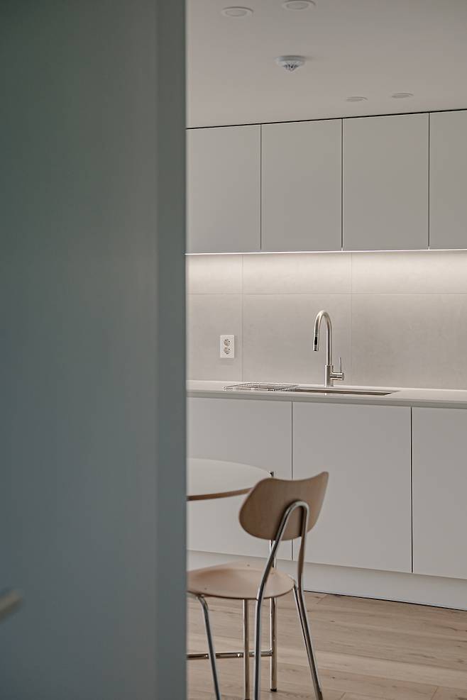 서재에서 바라본 주방의 모습입니다. 의자는 L&C Standal의 아르노 체어입니다. 가격도 합리적이고 우드와 스테인리스 스틸의 조합이 아름답습니다.