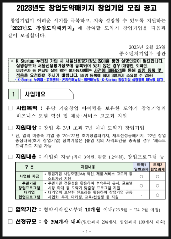 ▶ 사업공고일 : 미정(24년도 2월 중 예상) → K-Startup에서 공고를 기다려 주세요!