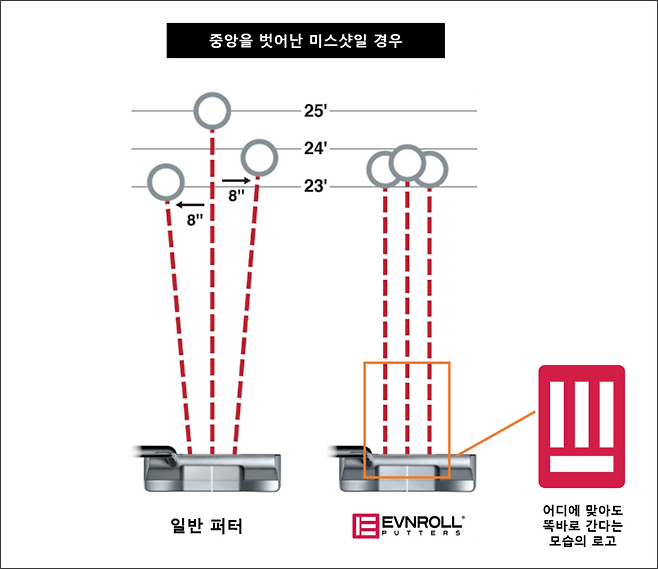 이븐롤 퍼터는 페이스 부분의 특허받은 그루브 기술의 탁월한 효과는 이미 수없이 증명되었기에 아래 사진들로 간략하게 올립니다. 공을 똑바로 보내기에는 이븐롤만한 퍼터는 없다고 생각합니다.