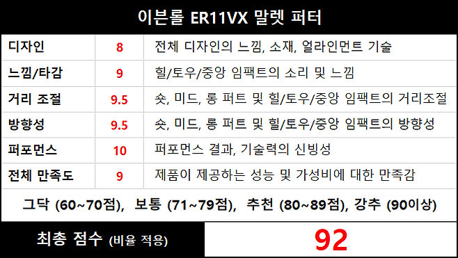 이상, 이븐롤 ER11VX 말렛 퍼터 사용 후기를 마칩니다. 감사합니다.^^