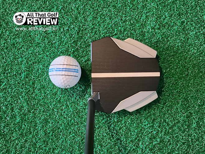 헤드 사이즈가 더 큰 말렛 퍼터는 블레이드보다 더 긴 정렬 선을 제공함으로 겨냥하기가 훨씬 유리하다고 느껴왔지만, 이 모델은 특히 더 자신감을 주었습니다. 검은 배경에 흰색이 대조적이어서 그런지, 홀까지 이어가는 선이 머릿속에 더 생생히 그려지는 것 같네요. 아무리 잘 친 퍼트라도 방향이 틀리면 답이 안 나오는데, 이 모델은 저에게 딱 맞는듯합니다! 블레이드 모델에서 이 같은 얼라인먼트 어디 없나요??