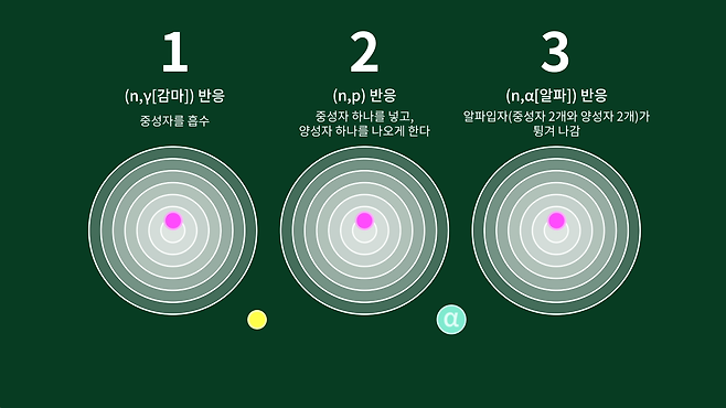 나타나는 반응들은 간략히 보면 위와 같고, 이중 두 번째(n,p) 반응을 활용하면 금(Au)을 만들 수 있는데, 수은(Hg)에 중성자를 강하게 충돌시켜서 수은 핵의 양성자 하나가 나오게 하면 됩니다.