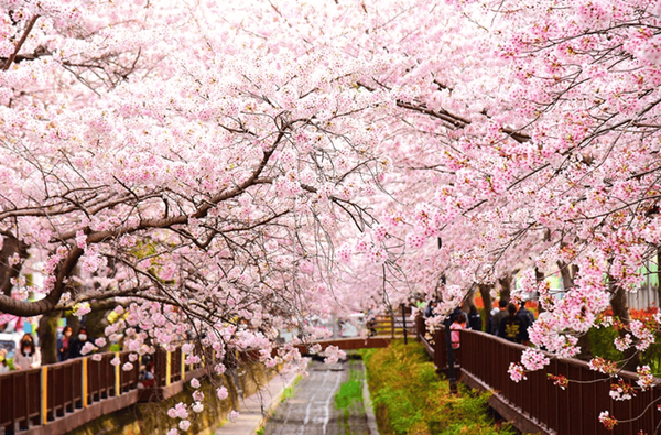 벚꽃 명소 하면 단연 떠오르는 곳, 바로 경남 창원 진해의 여좌천입니다. 봄이 되면 여좌천을 따라 흐드러지게 핀 벚꽃이 하늘을 덮고, 물 위에는 꽃잎이 수놓은 듯 떠 있는 장관이 펼쳐지는데요. 매년 열리는 진해군항제의 중심 장소로, 벚꽃시즌엔 전국 각지에서 가족 단위 관광객들이 몰려들 정도로 유명합니다.