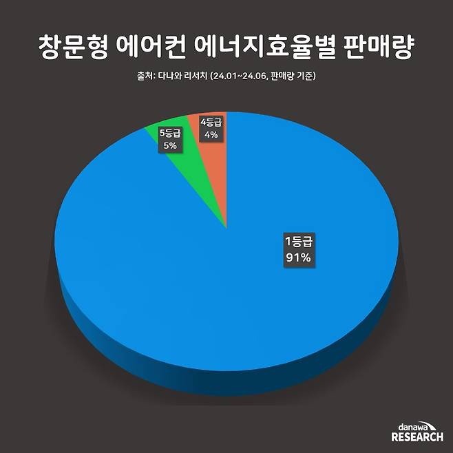 아무리 작고 간편하지만 명색의 에어컨이다 보니 전기 요금 걱정이 된다. 2024년 상반기에 판매된 창문형 에어컨 중 91%가 에너지 효율 1등급 제품으로 집계되었다. 10개 중 9개는 1등급이기 때문에 다소 안심하고 사용할 수 있지만. 10개 중 1개를 구매하는 안타까운 상황이 생기지 않도록 에너지 효율을 반드시 확인하자.