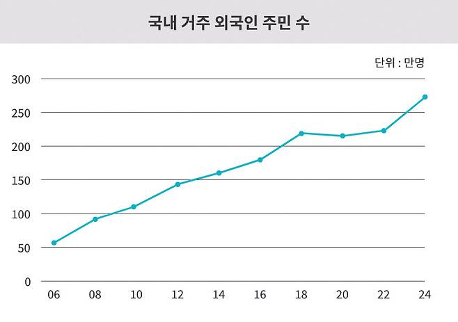 ‘국내 체류 외국인 100만명 돌파, 100명 중 2명이 외국인.’ 지난 2007년 국내 언론에 도배됐던 기사 타이틀이었다. 17년이 지난 지금 국내에 체류하는 외국인은 얼마나 될까? 2024년 10월 기준으로 국내 체류 외국인은 260만명에 육박하면서 전체 인구 100명 중 5명이 외국인인 본격적인 다문화 사회로의 진입을 앞두고 있다. 이번 칼럼에서는 폭발적으로 늘어나는 외국인 주민들과 지역 및 부동산에 대해 이야기해보고자 한다. 요즘 어디서나 쉽게 볼 수 있는 ‘이웃집 찰스’에 관한 이야기다.
