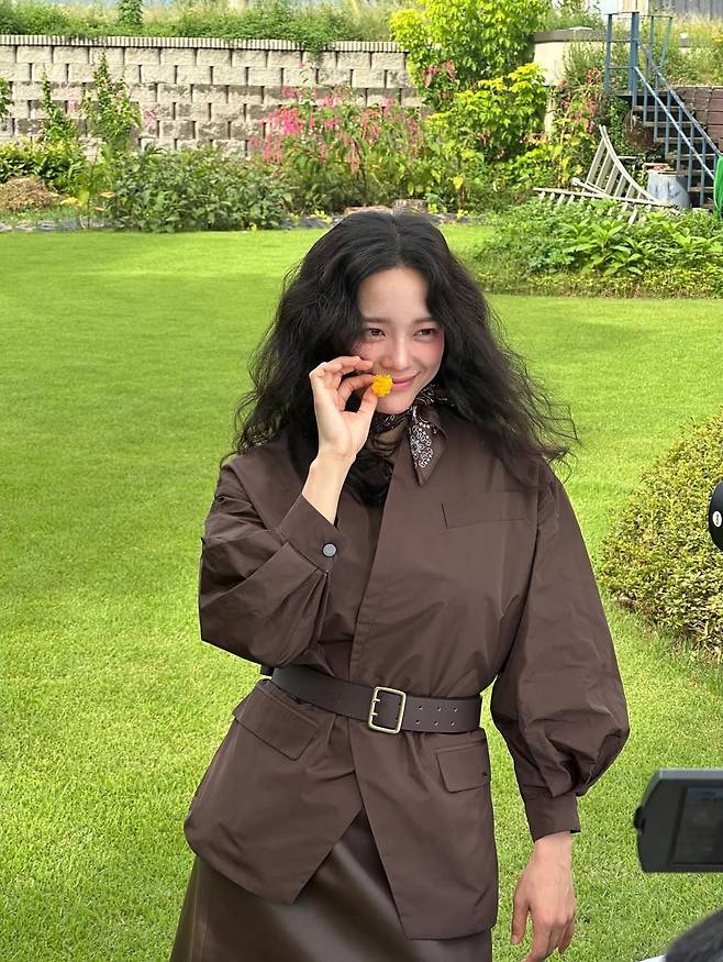 숲속의 햇살과 바람에 따라 생동감 있게 움직이며 '살아있는 여신' 같은 분위기를 연출했다.
