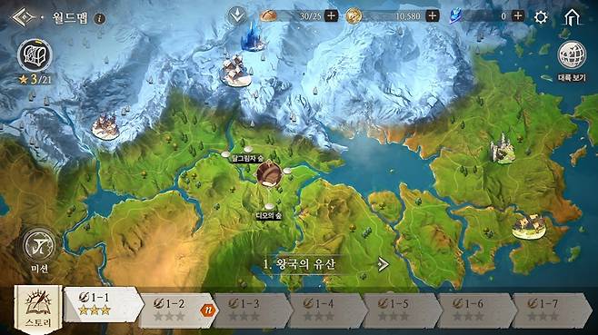 월드맵에서 안타리아에서 벌어지는 이야기를 한눈에 확인할 수 있다. 이야기는 크게 ‘장’으로 구분되며 스토리는 ‘스테이지’에서 확인이 가능하다. 스토리는 창세기전 시리즈의 스토리와 전투를 즐길 수 있는 메인 콘텐츠다.