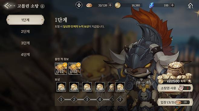 ‘고블린 소탕’은 모여있는 고블린을 공격해 엘드를 강탈하는 수행 콘텐츠다. 고블린 처치 성과에 비례해 단계별 보상을 획득할 수 있다.