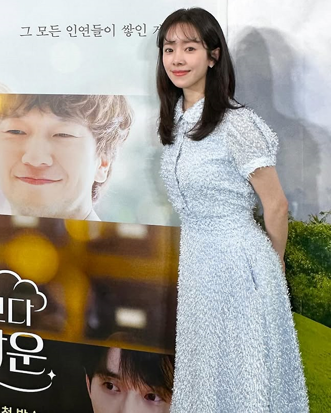 하늘빛 블라우스와 플레어 스커트의 조화는 그녀 특유의 청순하면서도 사랑스러운 분위기를 극대화했다.
