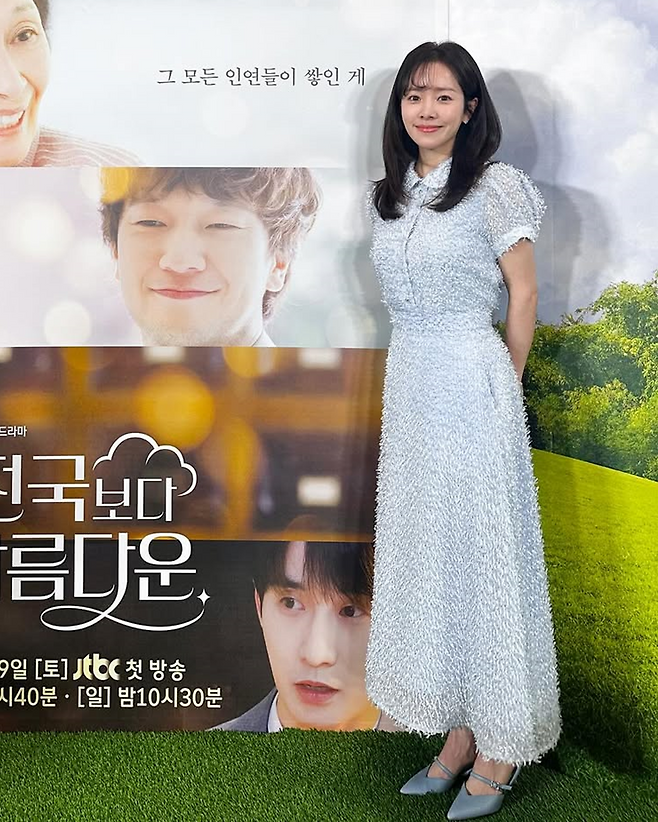 한지민이 JTBC 드라마 '천국보다 아름다운' 제작발표회에서 선보인 스타일이 눈길을 끌었다.