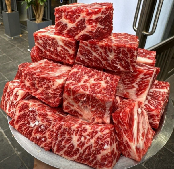 )네모난 형태로 썰어내 더 많은 육즙을 머금고,겉은 쫄깃하고 속은 녹아내리는 미친 식감… 진짜 “미쳐버린 맛”→ 쯔양이 3.5kg 먹고 간 이유, 바로 이 고기 때문!