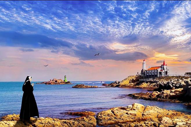 푸른 하늘과 바다, 이국적인 건축물이 어우러져 이색적인 여름 바다 사진을 남기기에 딱 좋은 장소예요. 성당뿐만 아니라 주변의 등대, 바위, 파도까지 함께 담으면 더욱 풍성한 구도가 완성됩니다.