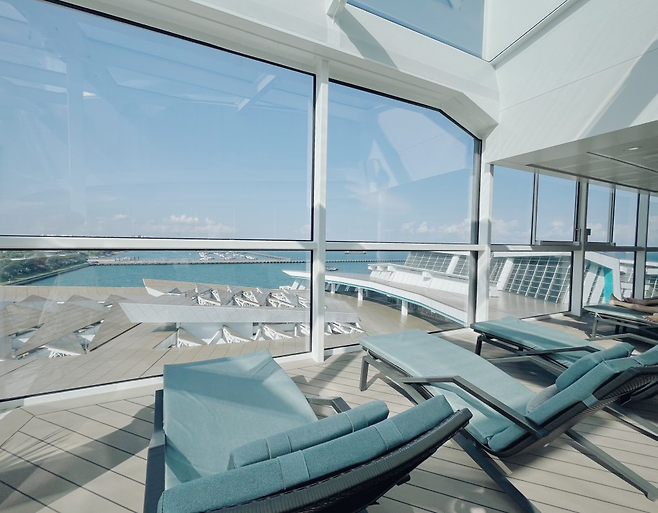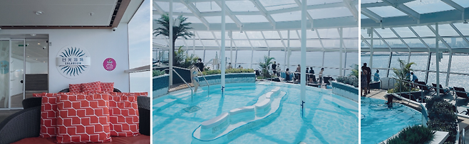14층 데크에 있는 실내외 수영장과 선베드는 일정 중 가장 먼저 찾았던 곳이다. 크루즈 첫 날 승선하면 사람들이 이곳부터 모여든다. 실컷 즐기다가 이너피스(내적 힐링)가 필요하다면 언제든 와서 머무르게 될 것이다.