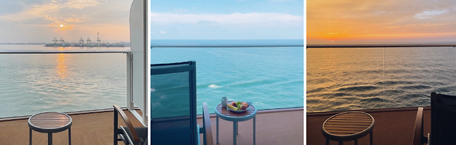 첫 크루즈, 그리고 크루즈의 정석을 느끼고 싶다면 발코니 선실을 추천한다. 바다 공기의 청량함을 객실에서 언제, 어느 때나 느낄 수 있다.