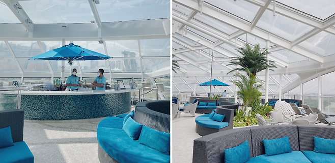 일단 MBTI 앞자리 E(외향형)인 이들은 조용히 손들 것. 파워 핵인싸에겐 파라다이스인 곳이 크루즈 아닐까. 그들에게 제격인 곳이 이곳이다. 15층 선미 야외 데크는 가족들과 MZ세대 놀이터다.