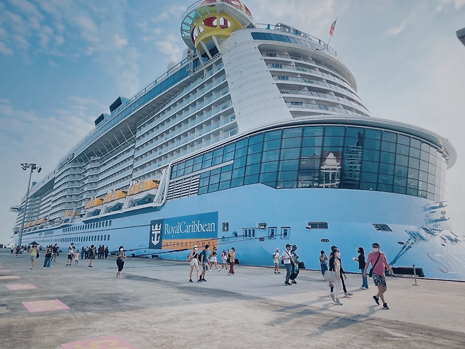 이번에 묵었던 크루즈 '스펙트럼호(Spectrum Of The Seas)'. 2019년 4월 아시아에서 처음 운항을 시작했다. 세계적 크루즈 선사인 로얄캐리비안사의 17만t에 달하는 매머드급 크루즈다.