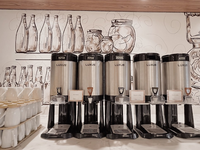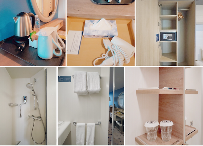 스위트를 제외한 일반 선실은 체크인 당일 생수 1병만 지급한다. 크루즈 내 식당에서 커피나 물을 언제든 받아올 수 있으니 객실에 구비해두면 밤낮으로 편리하게 지낼 수 있다.