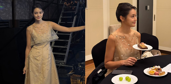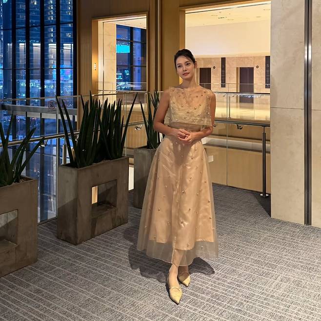 공개된 사진 속 안현모는 은은하게 빛나는 누드 톤의 드레스를 입고 고급스러운 분위기를 연출했습니다. 드레스에 촘촘히 장식된 포인트 디테일이 그녀의 우아하면서도 세련된 스타일링을 강조했습니다.