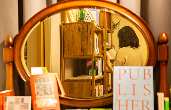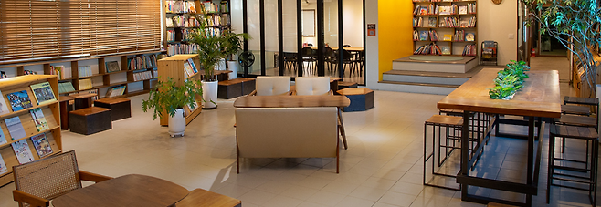 사진 작품과 공예, 그리고 책이 한 공간에 어우러져 있어 시각적인 즐거움을 제공합니다. 단순히 책을 읽기 위한 공간을 넘어, 문화와 예술을 함께 경험할 수 있는 특별한 장소입니다.