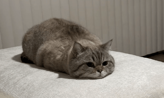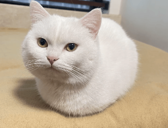 손이 사라진 채로 앉아있는 고양이는 바다표범처럼 보입니다. 둥근 공처럼 보이기도 하는데, 이렇게 사랑스러울 수 있을까요?