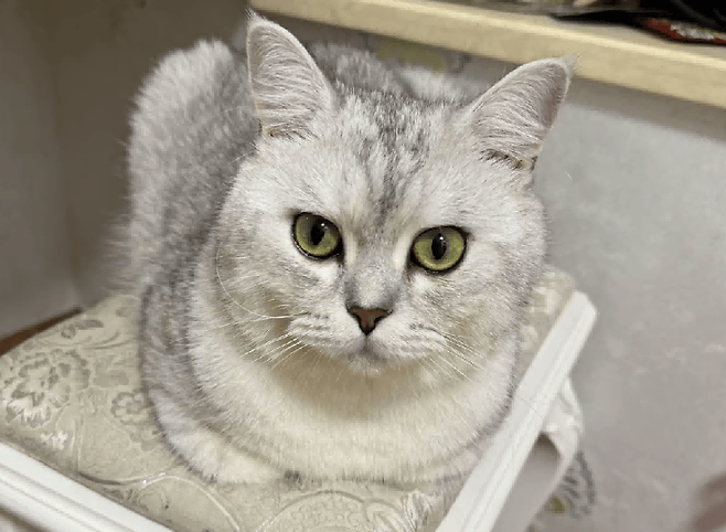 이 고양이는 스스로 자부심을 느끼고 있습니다. 자신만의 품격을 보이기 위해 손을 감추고 우아한 표정으로 앉아있습니다.