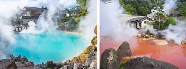 지옥별로 색과 성분에 특색이 있으며, ‘지옥 순례’는 코발트블루의 ‘바다 지옥’과 새빨간 온천이 끓어오르는 ‘피의 연못 지옥’, 약 20m에 이르는 열탕을 뿜어 올리는 ‘용권 지옥’ 등 각각의 특색이 다른 8곳을 돌아보는 벳푸의 대표적인 관광 코스입니다.