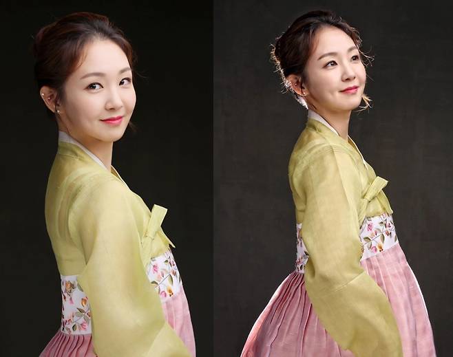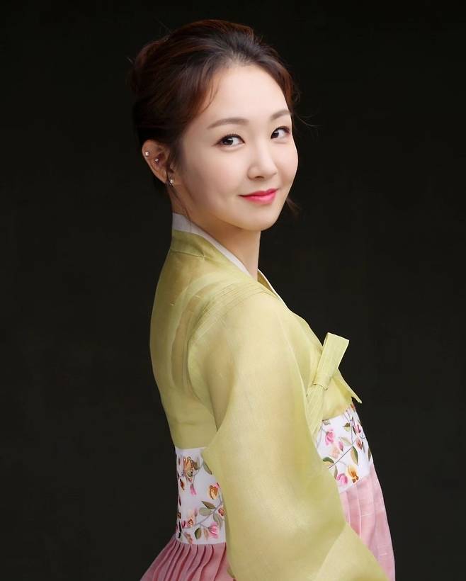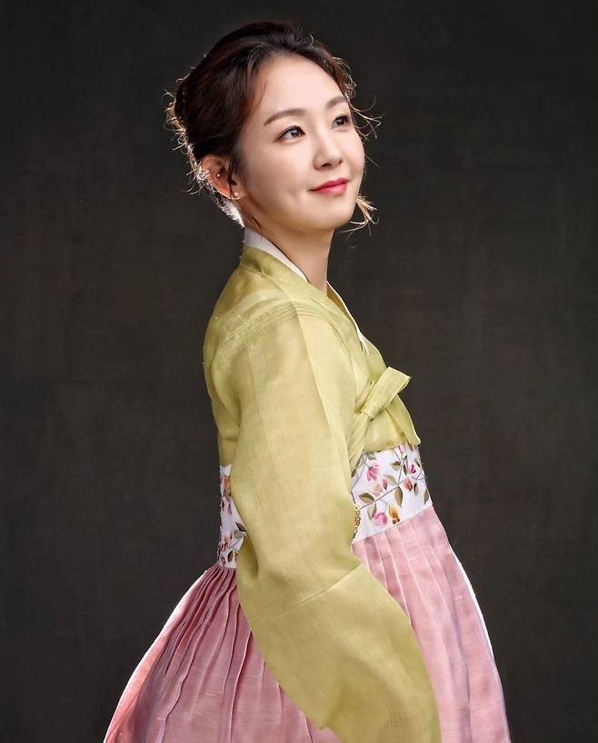 오정연은 연둣빛 저고리와 핑크색 치마를 입고 단아한 한복 자태를 선보였습니다. 특히 오정연은 한복과 잘 어울리는 올림머리로 기품 있는 미모를 뽐냈습니다.