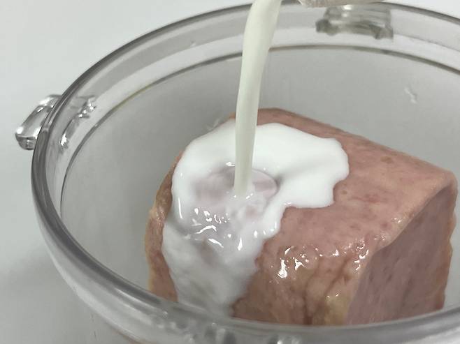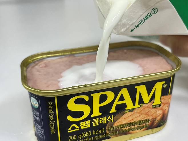 통조림햄을 우유에 담가 두면 본래 짠 스팸 등도 짠맛이 어느 정도 중화되어 훨씬 먹기 좋습니다. 또한 통조림햄 특유의 잡내가 흡수되면서 더 깔끔한 맛으로 즐길 수 있습니다.