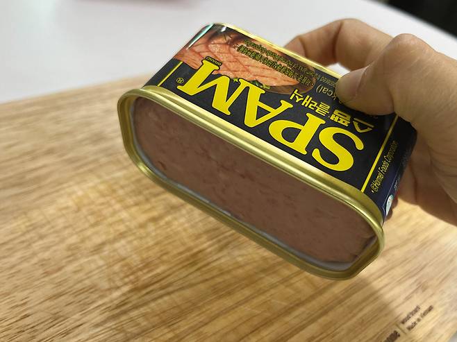 가장자리에 굳어 있던 스팸 기름이 서서히 녹으면서 햄이 쉽게 빠집니다.