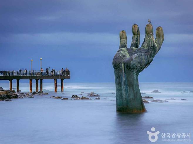 - 바다 속에서 솟아오른 ‘상생의 손’ 앞은 필수 포토존
