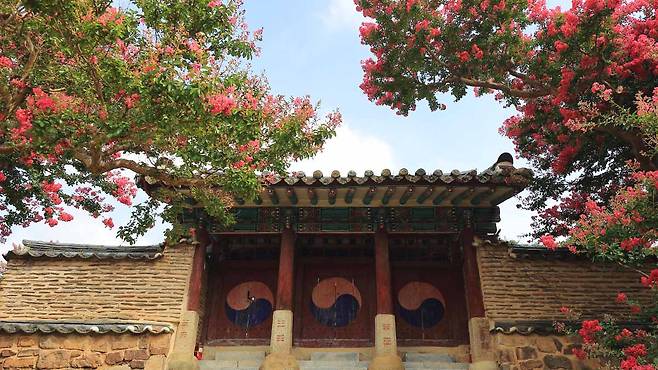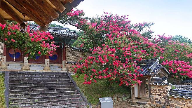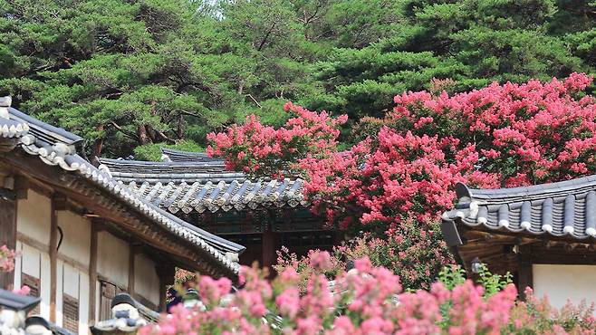 수백 년의 시간을 머금은 고건축 사이로 흐드러지게 피어난 선홍빛 배롱나무꽃은 단순한 꽃구경을 넘어선다. 그 풍경은 어느새 ‘아름다움’이라는 말만으론 설명할 수 없는 울림으로 다가온다.