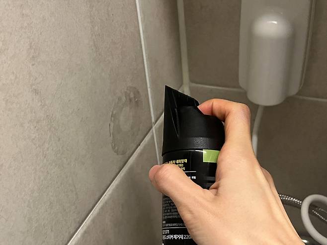 스티커가 붙은 부위에 가볍게 뿌린 뒤 성분이 스며들 수 있도록 잠시 기다립니다. 스티커제거제는 냄새가 강하기 때문에 사용 시에 반드시 환기를 시켜 주세요.