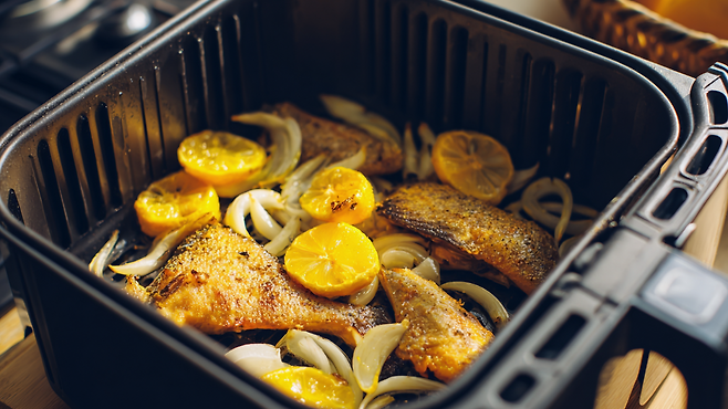 최근 많은 가정에서 생선을 에어프라이기로 굽는다. 하지만 고온의 공기가 순환하는 구조상 냄새가 더 퍼질 수 있다는 점이 단점으로 꼽힌다. 이럴 때 미림을 바르고 양파·귤껍질을 함께 사용하는 조리법은 훌륭한 대안이 된다.