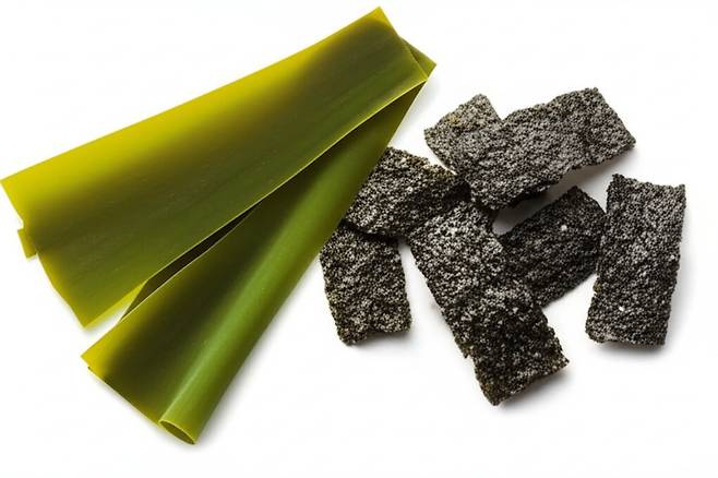 다시마는 튀기지 않고 생 다시마로 섭취하는 것이 가장 좋습니다. 다시마 표면에 생기는 흰 가루는 만니톨이라는 천연 감미료이니 안심하고 드세요.