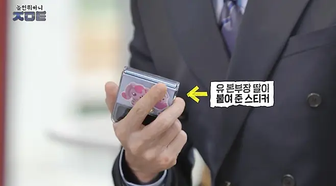 유재석은 평소 딸 나은이가 붙여준 스티커를 휴대전화에 붙이고 다닌다며 “제 아들 같은 경우 이걸 TV로 보더니 가족 마케팅이 아니냐고 하더라”면서 아들 지호의 반응을 전했다.