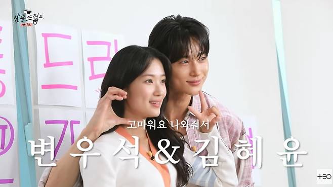 김혜윤은 변우석을 향해 "오빠가 말씀드려"라고 미소 지었다. 변우석은 "노코멘트 하겠다"고 말해 현장의 분위기를 띄웠다. 이어 "솔이 좋아"라면서 '선업튀'에 나온 노래를 불렀다.