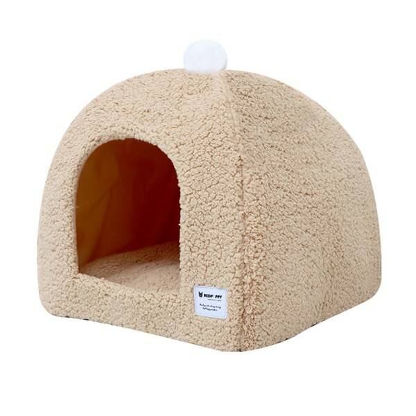 따뜻한 소재로 되어 있고, 하우스형으로 주변도 막혀 있어 겨울에 사용하기 좋은 하우스형 강아지 방석이에요. 사이즈가 작은 편이라 중소형견용으로 추천해요. 지붕 부분이 탄탄하지는 않은 편이라, 밟고 올라가면 찌그러질 수 있다는 단점이 있습니다.